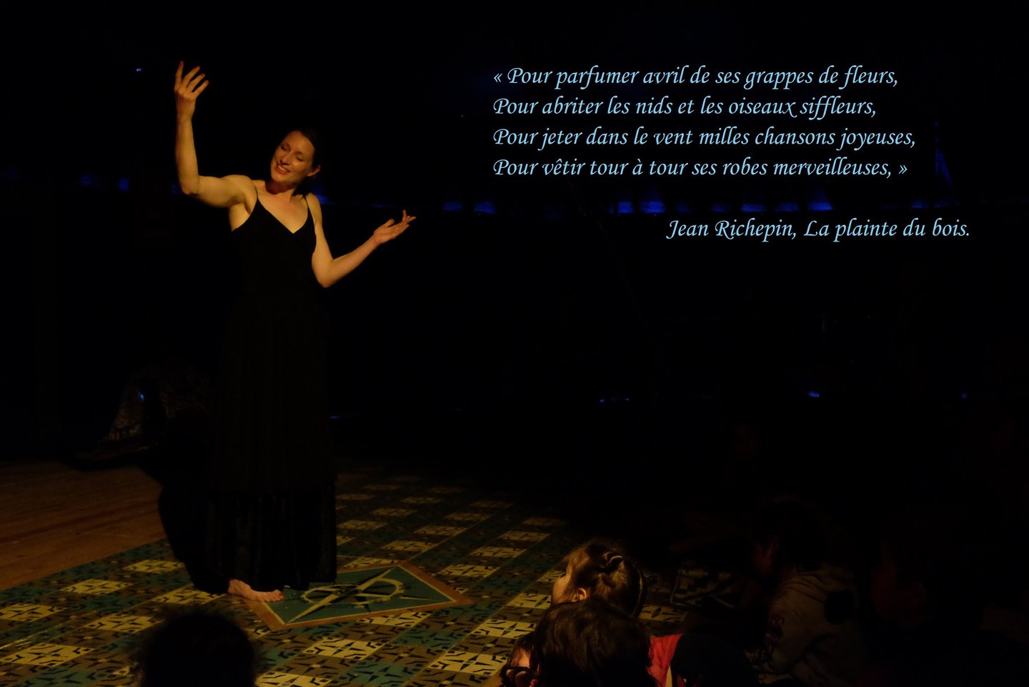 A partir de 7 ans, plateau minimum 2 mètres carrés, pas de sonorisation si petite jauge. Durée 1h ou 1h30.